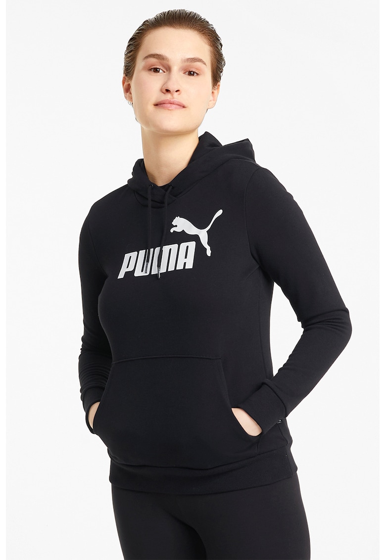 Hanorac cu imprimeu logo si snururi de ajustare Essentials - Alb/Negru