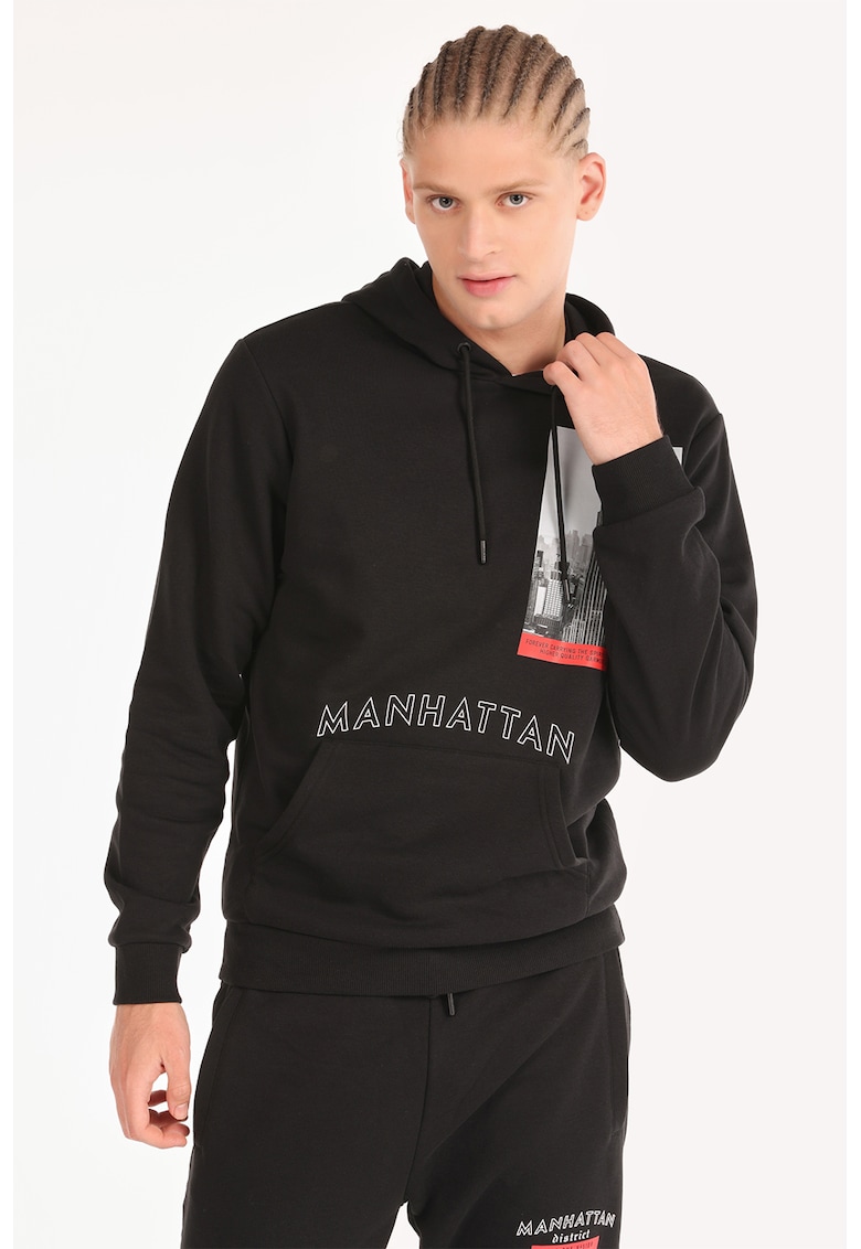 Hanorac cu imprimeu text - Negru