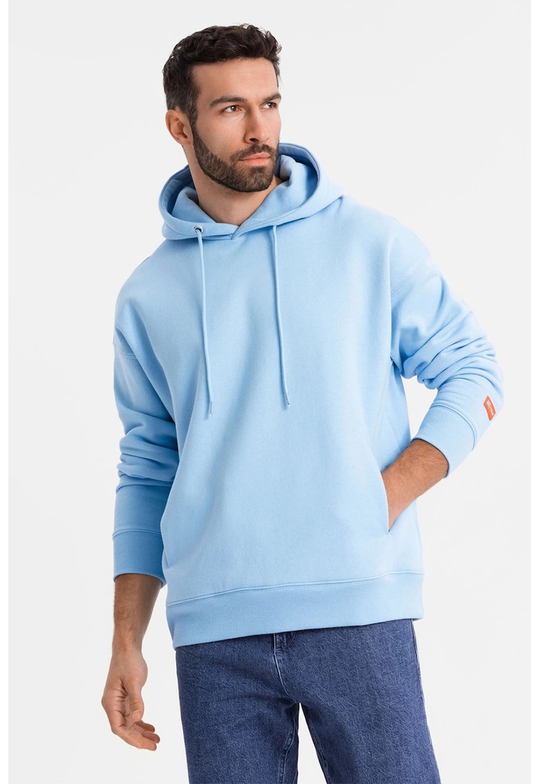 Hanorac din amestec de bumbac cu maneci cazute - Albastru deschis