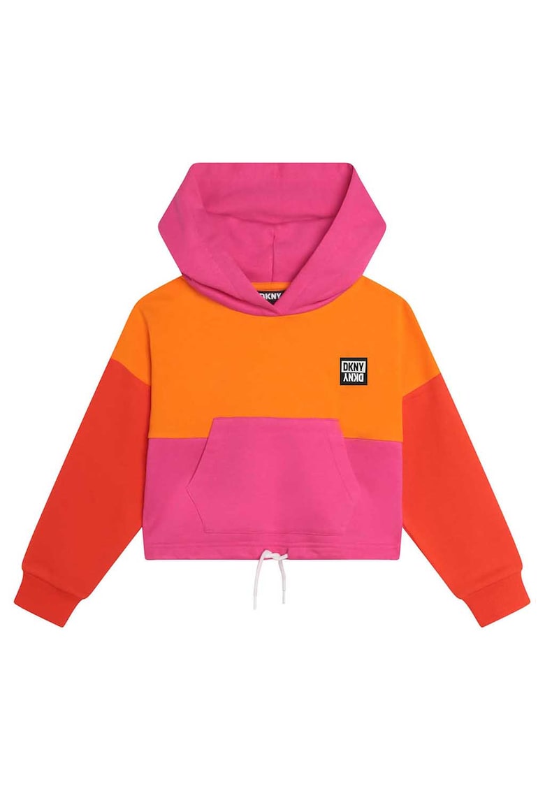 Hanorac in doua nuante cu buzunar kangaroo - Portocaliu mandarina/Roz