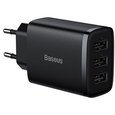 Baseus Compact este un încărcător de perete avansat echipat cu trei sloturi USB. Oferă suficientă energie pentru a încărca rapid chiar și cele