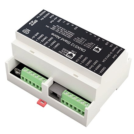 DMX-RAIL-512 este interfața de sine stătătoare DMX ideală pentru instalarea în dulapuri DIN standard cu șine DIN. Dispozitivul Ethernet DMX de s