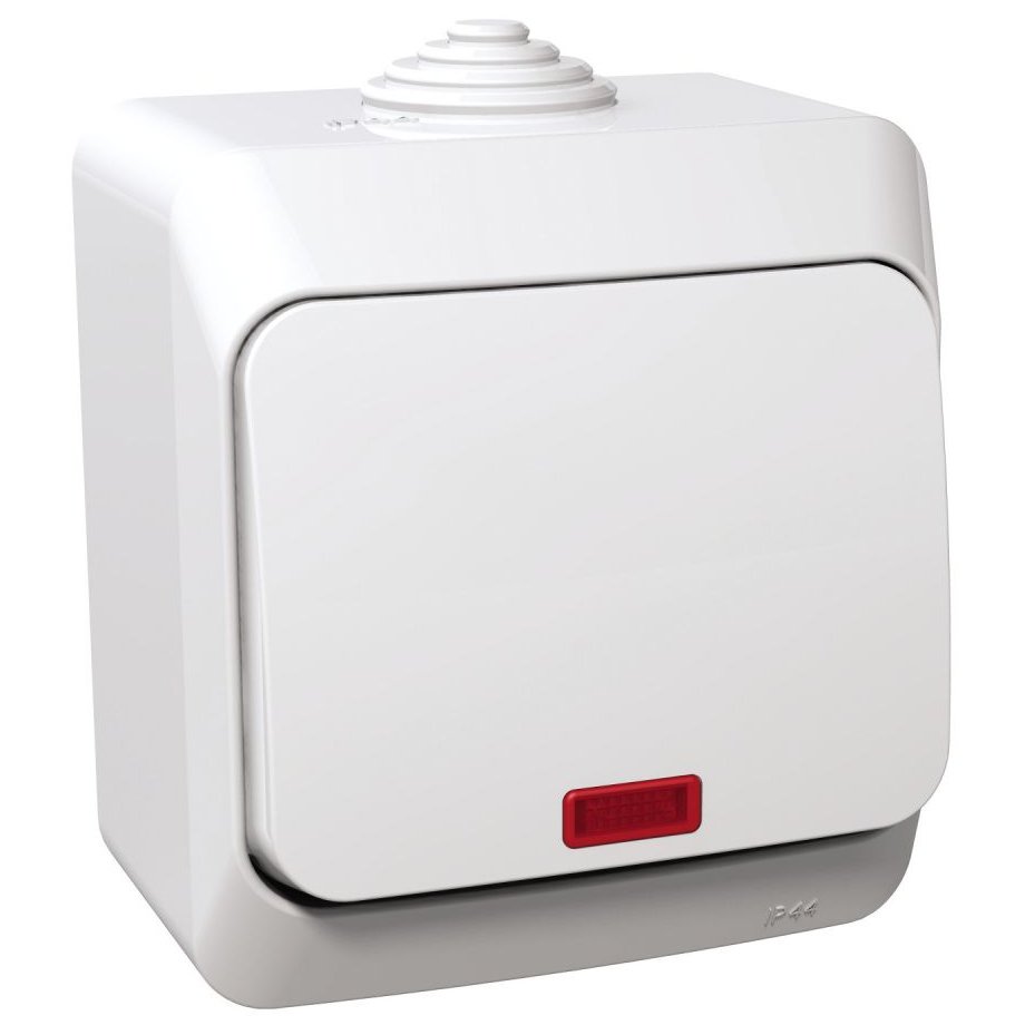 Tip produs: Intrerupator cap scara + indicator luminos Culoare: alb Curent nominal: 16A Grad de protectie: IP44 Latime: 66mm Inaltime: 79mm Material: