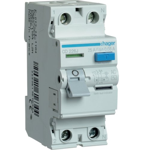 Intrerupator diferential 2P 25A, 30mA, AC Hager CD226J