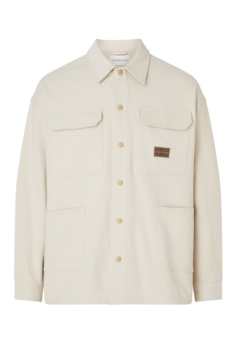 Jacheta-camasa de bumbac cu capse - Alb fildes