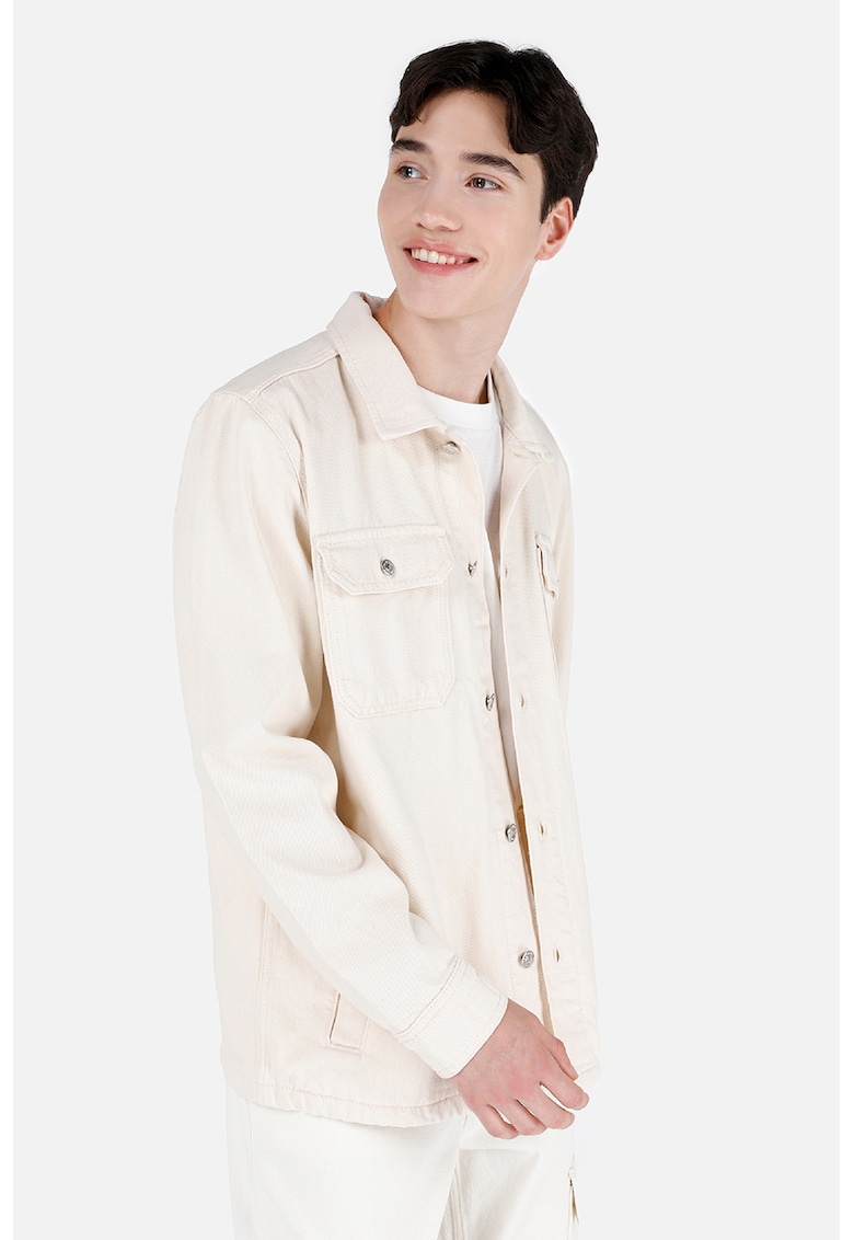 Jacheta-camasa din denim cu buzunare aplicate pe piept - Alb fildes