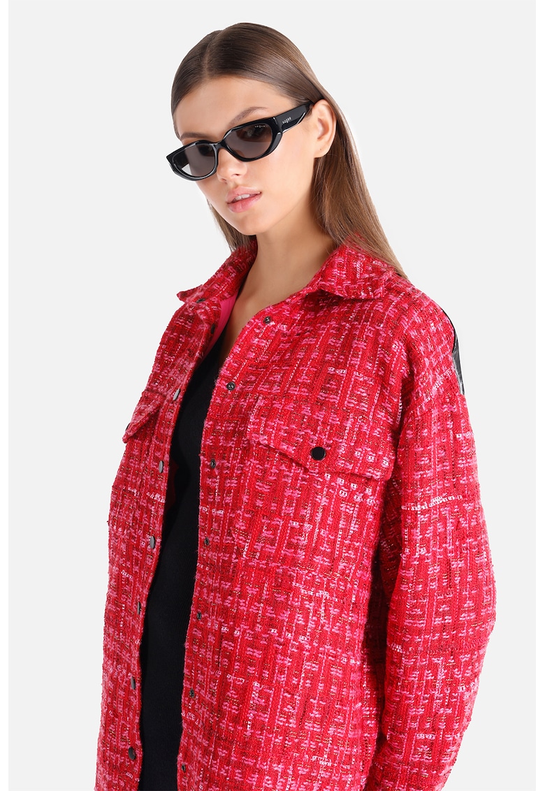 Jacheta-camasa din tuid cu garnituri din piele ecologica - Rosu