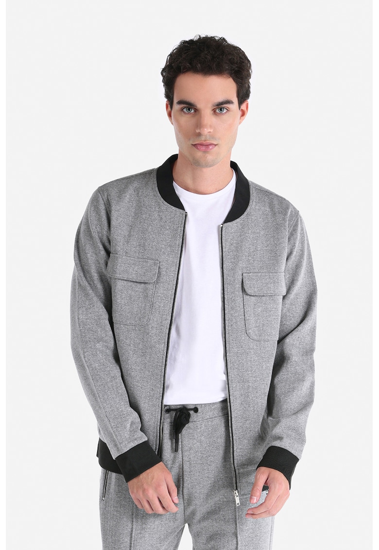 Jacheta cu fermoar si buzunare cu clapa - Gri melange