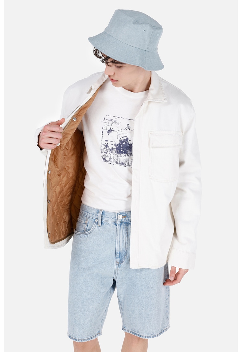 Jacheta din denim cu buzunare aplicate - Alb