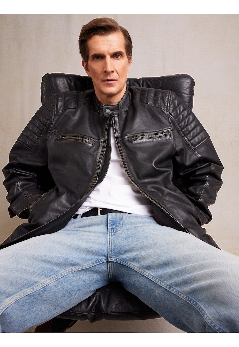 Jacheta din piele cu buzunare cu fermoar Hideo 906