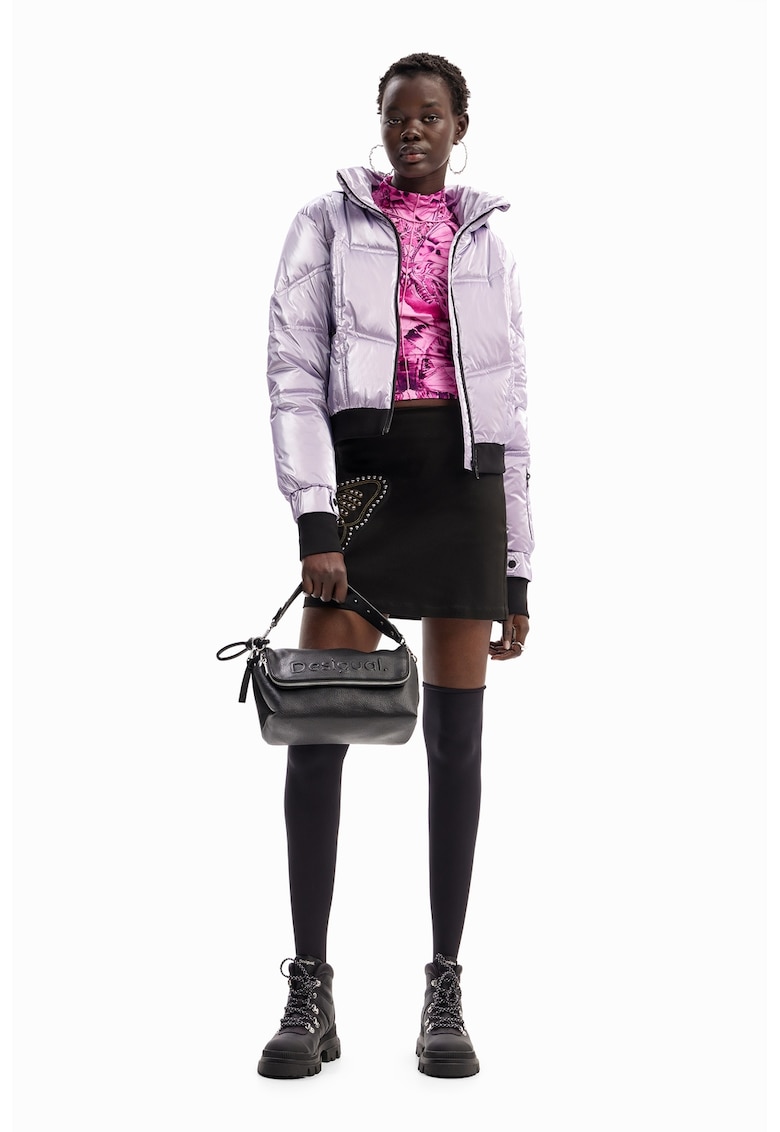 Jacheta scurta cu fermoar si gluga detasabila - Negru/Lila
