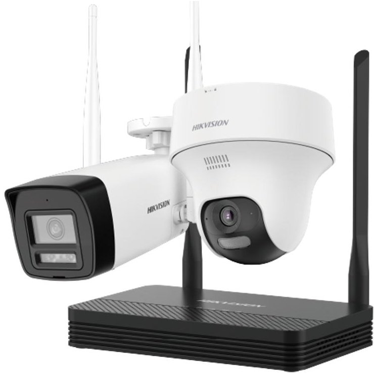 Kit 2 camere Wifi bullet si PTZ cu NVS HiLook IKS-2044BTH-PH/W, 4MP, lentila 2.8mm, IR 30m, lumina alba, microfon si difuzor, detectie miscare. Specif