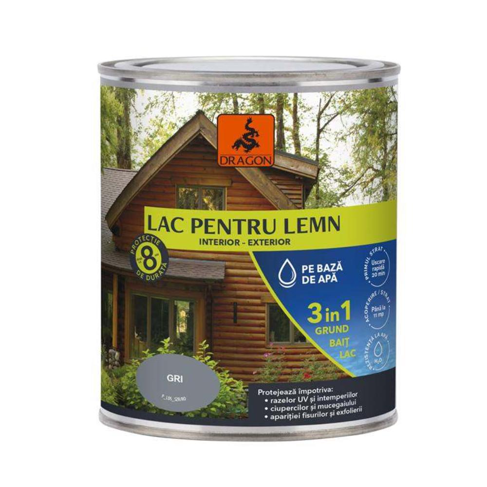 Lac pentru lemn 3in1 Dragon, gri, pe baza de apa, interior/exterior, 700 ml