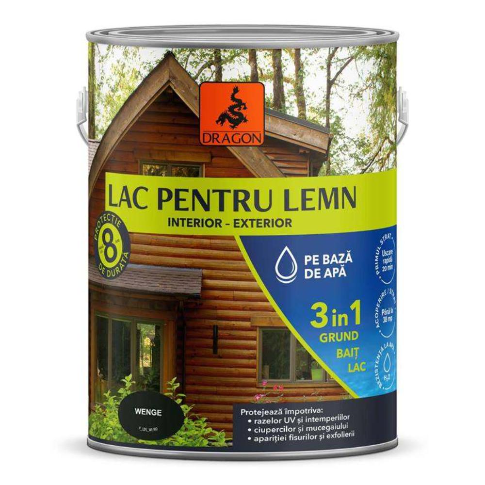 Lacul 3in1 Dragon este o solutie moderna pentru protectia si finisarea lemnului. Formula avansata combina impregnarea, colorarea si protectia intr-un singur produs. Potrivit pentru utilizare atat la interior, cat si la exterior. Utilizare Ideal pentru usi, ferestre, mobilier, lambriuri, garduri, fat...