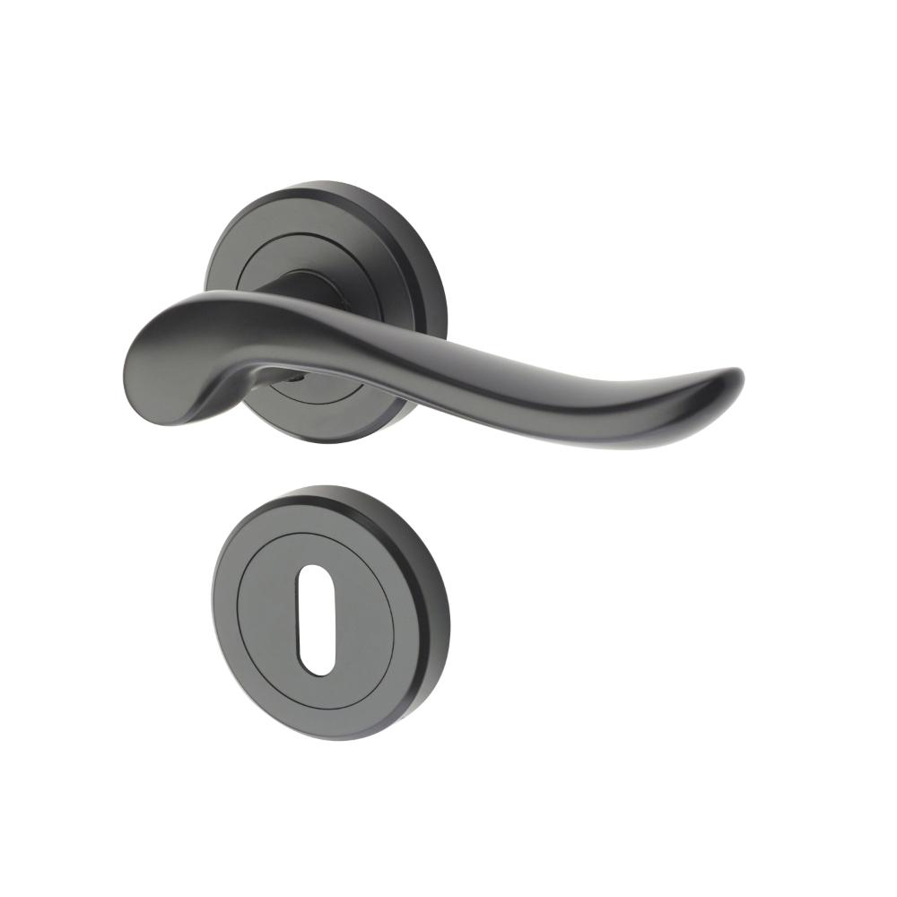 Maner usa interior cu rozeta rotunda Yale Eagle, zinc, negru mat, 121 x 23 x 62 mm