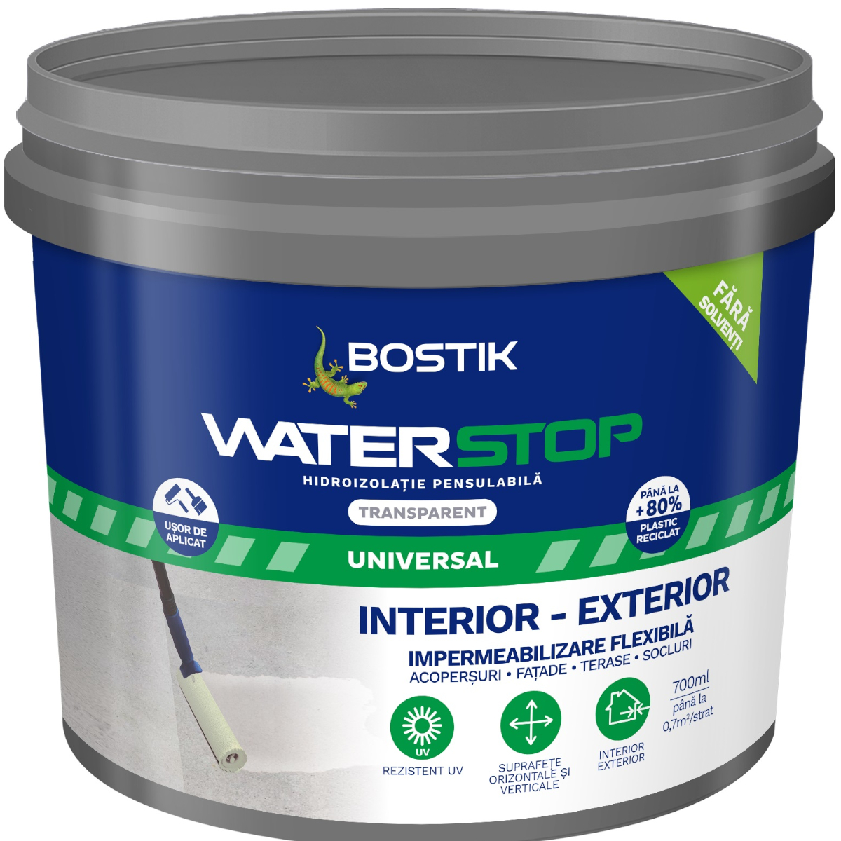 Membrana hidroizolatie Bostik Waterstop Acryl, transparent, 700 ml