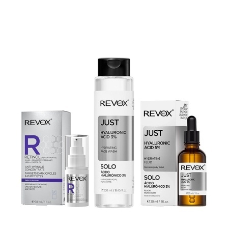 Pachetul Revox pentru îngrijirea zilnică a tenului este o rutină completă, concepută pentru curățarea delicată a pielii, îmbunătățirea aspectului zonei ochilor și menținerea confortului și supleții tenului. Setul reunește trei produse complementare, potrivite pentru utilizare zilnică, care acționează împreună pentru un aspect mai neted, mai luminos și mai îngrijit al pielii. Gelul pentru conturul ochilor cu retinol este formulat pentru a contribui la îmbunătățirea aspectului liniilor fine și la