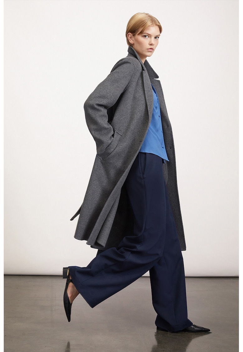 Palton din amestec de lana cu cordon in talie - Gri inchis melange