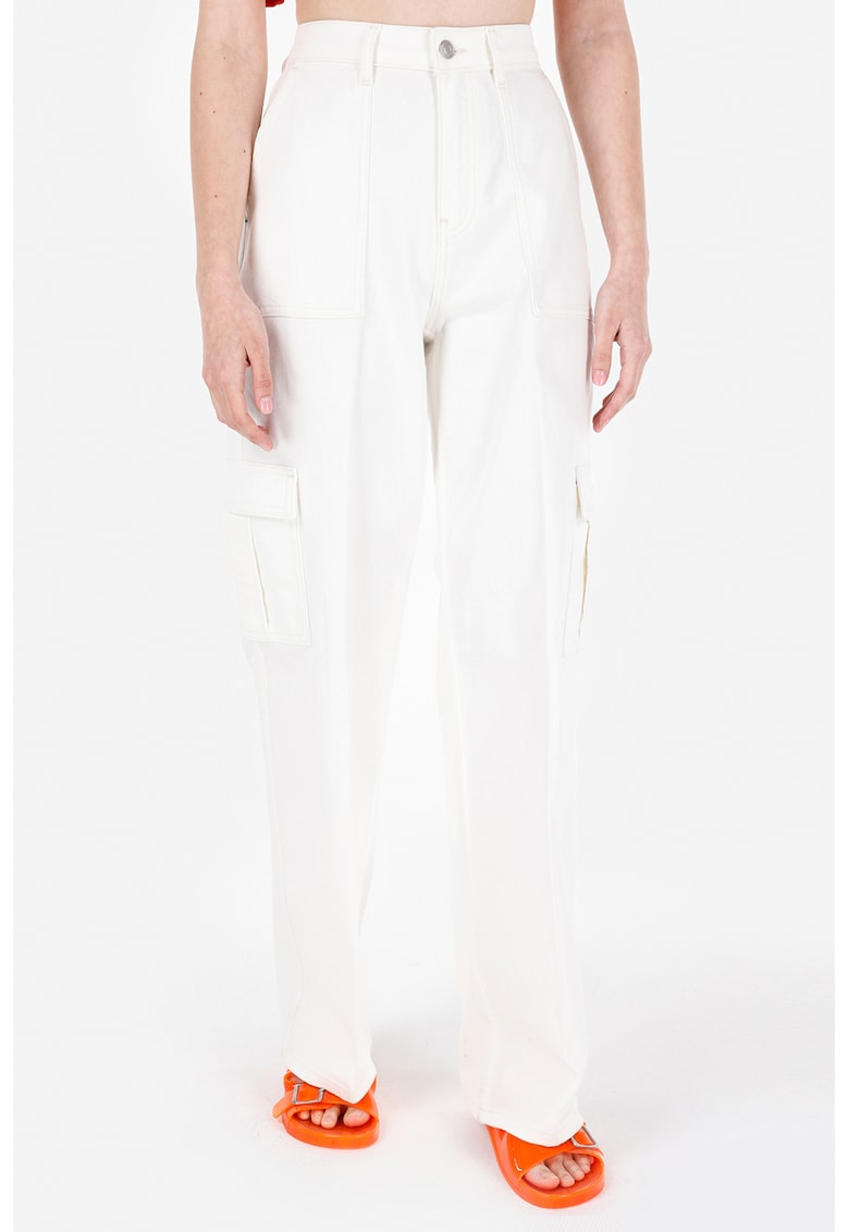 Pantaloni cargo cu croiala ampla si talie inalta - Alb murdar