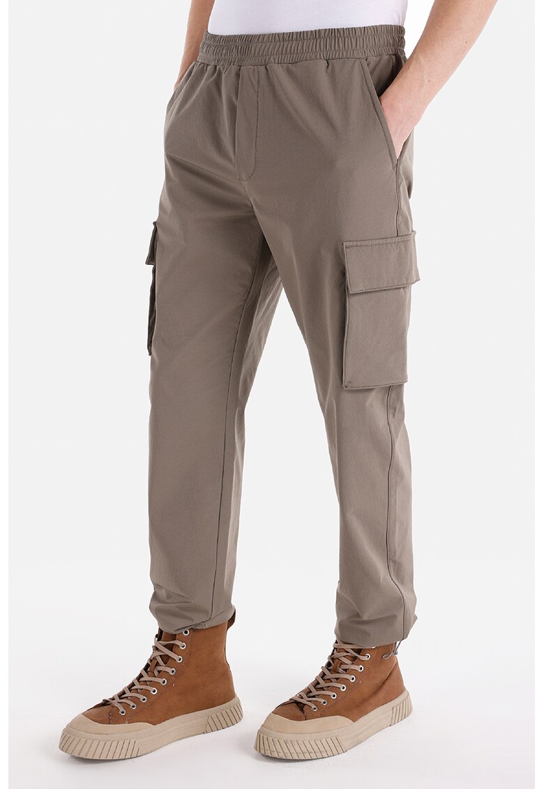 Pantaloni cargo cu talie elastica - Maro taupe