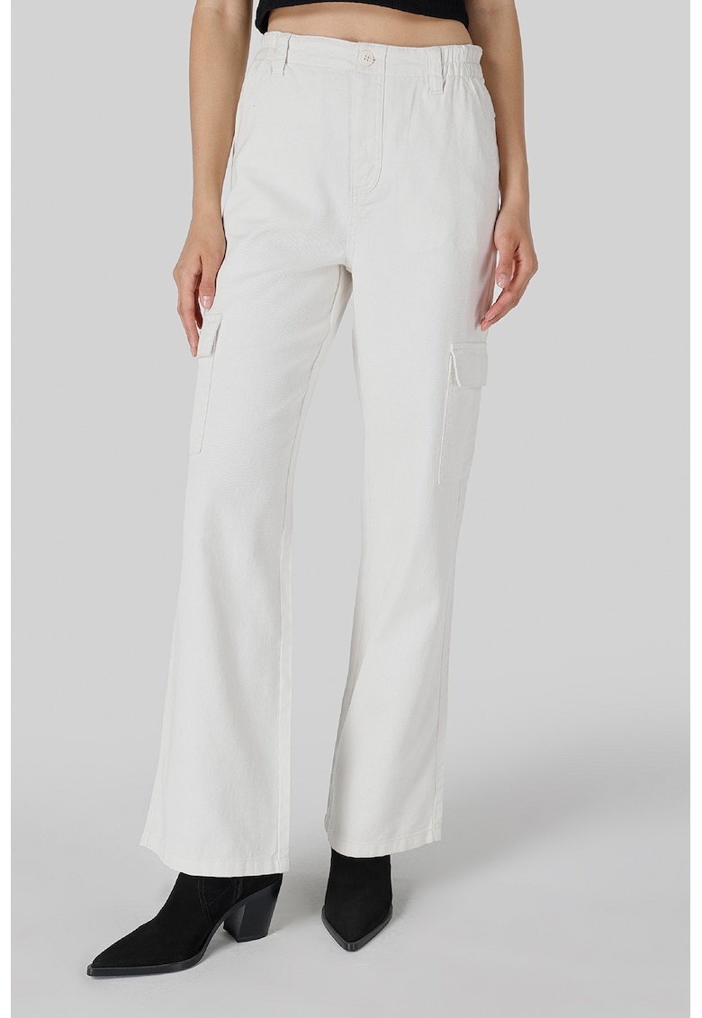 Pantaloni cargo drepti cu talie inalta - Alb murdar