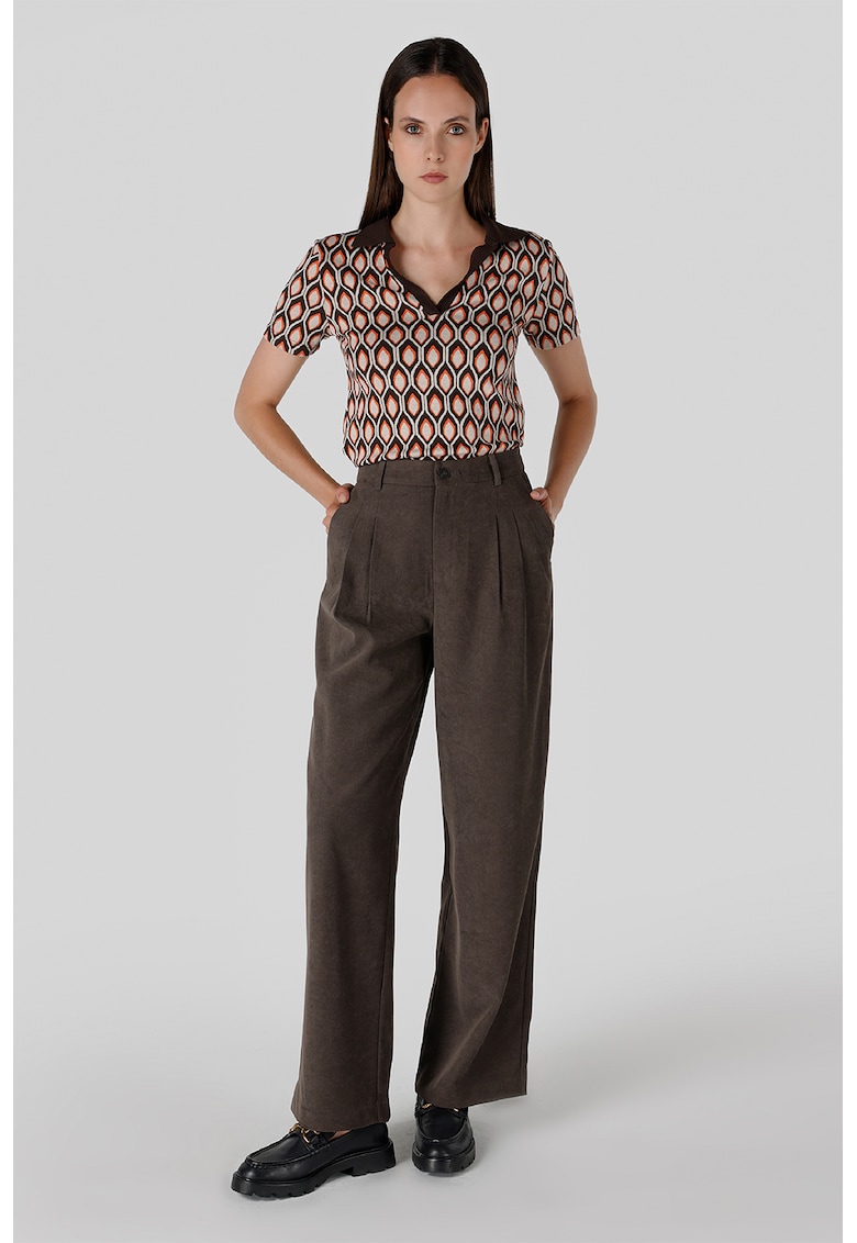 Pantaloni cu talie inalta si detalii plisate - Maro cognac