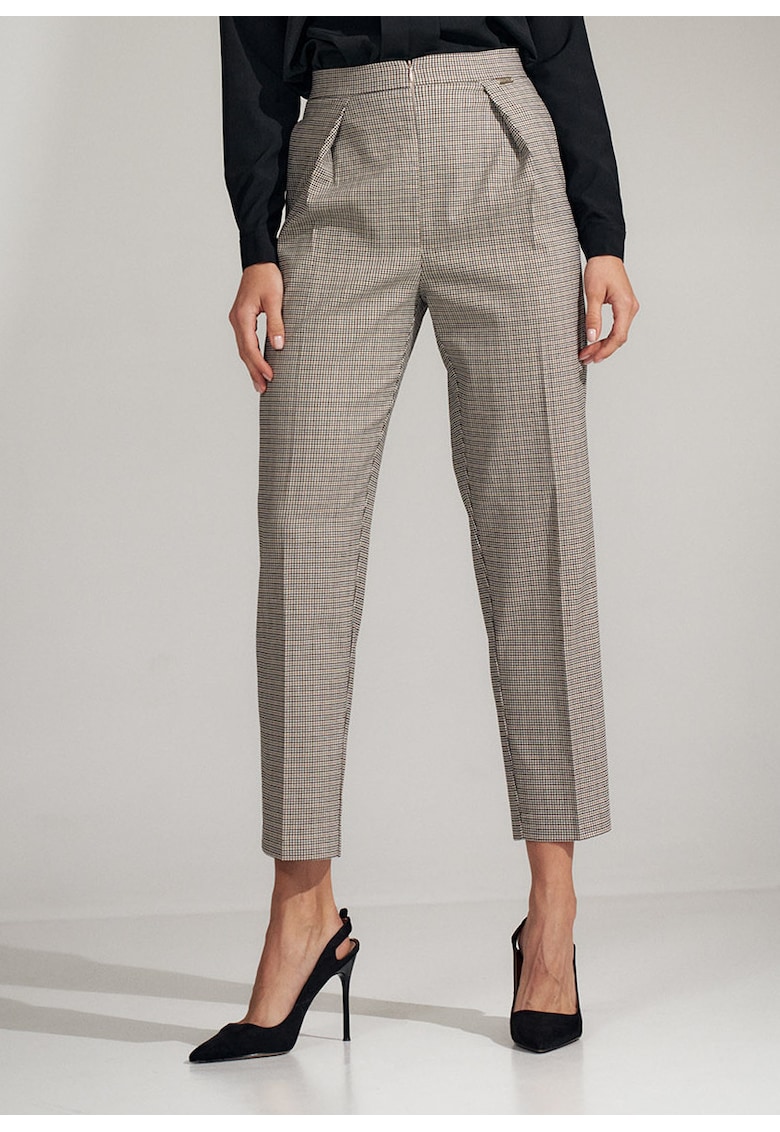 Pantaloni dama largi - talie inalta - carouri - poliester/nylon