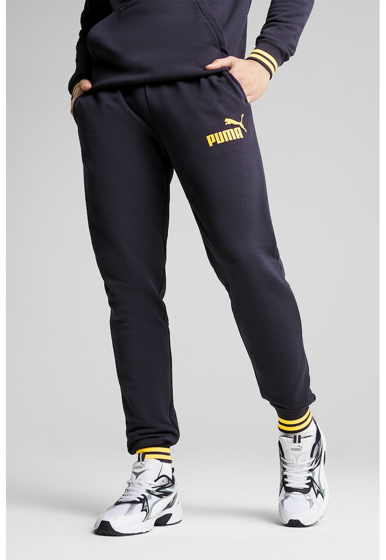 Pantaloni de trening din amestec de bumbac cu mansete elastice - Albastru ultramarin
