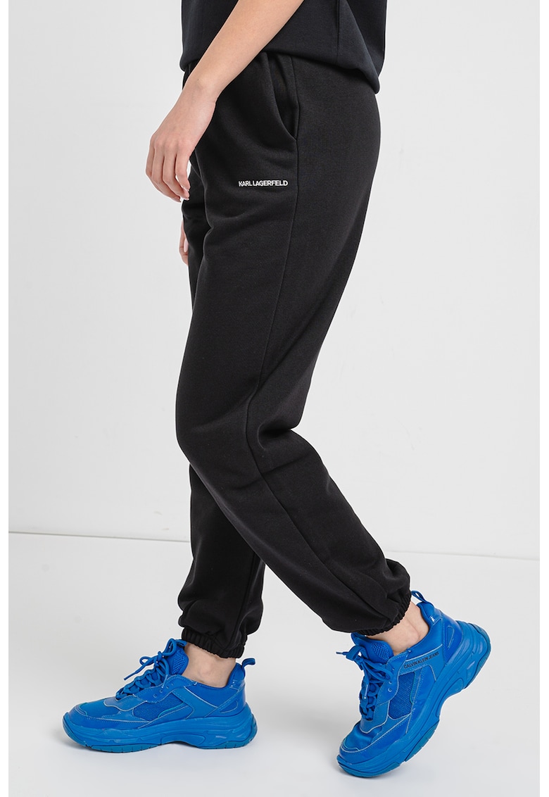Pantaloni de trening din amestec de bumbac organic cu talie inalta - Negru