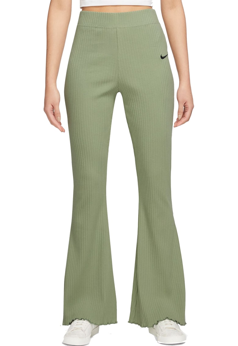 Pantaloni evazati cu aspect striat - Verde feriga