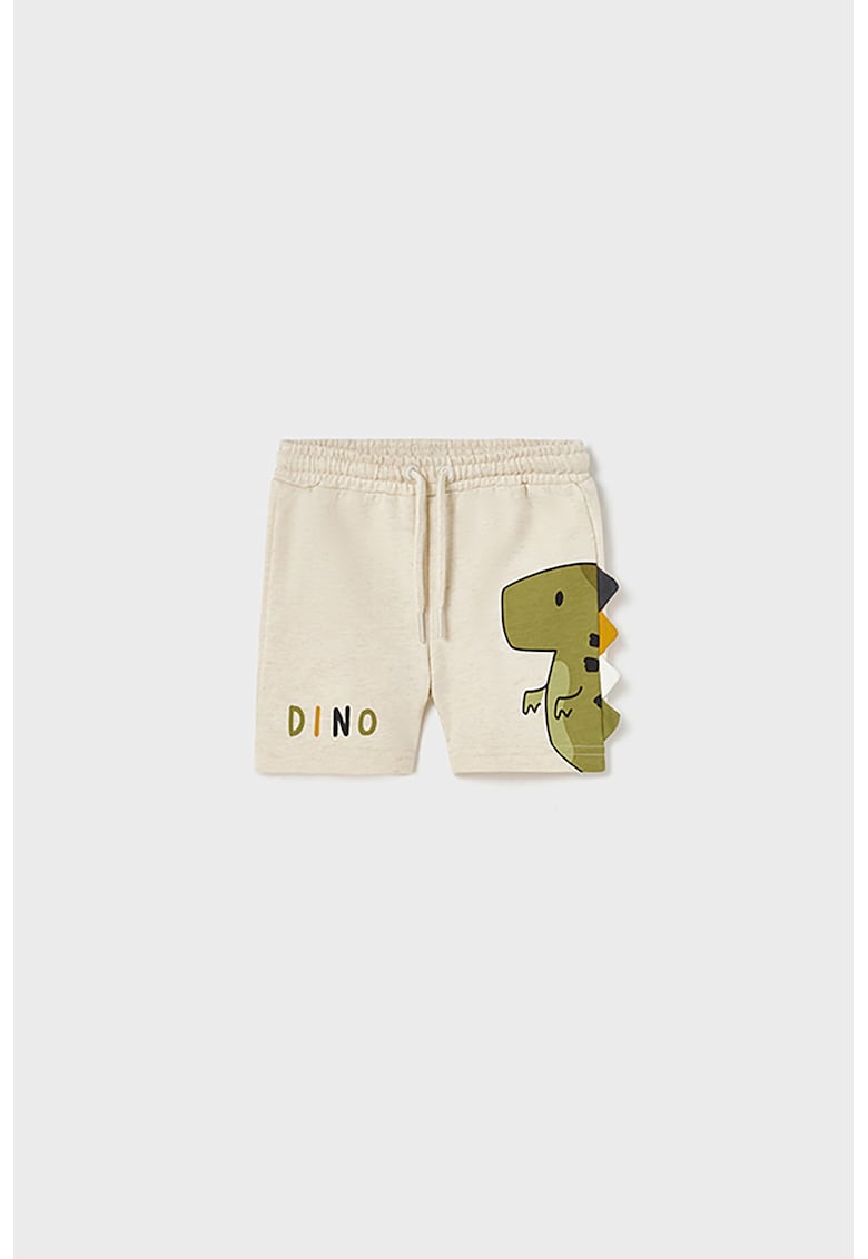 Pantaloni scurti cu snur si imprimeu cu dinozaur - Maro camel