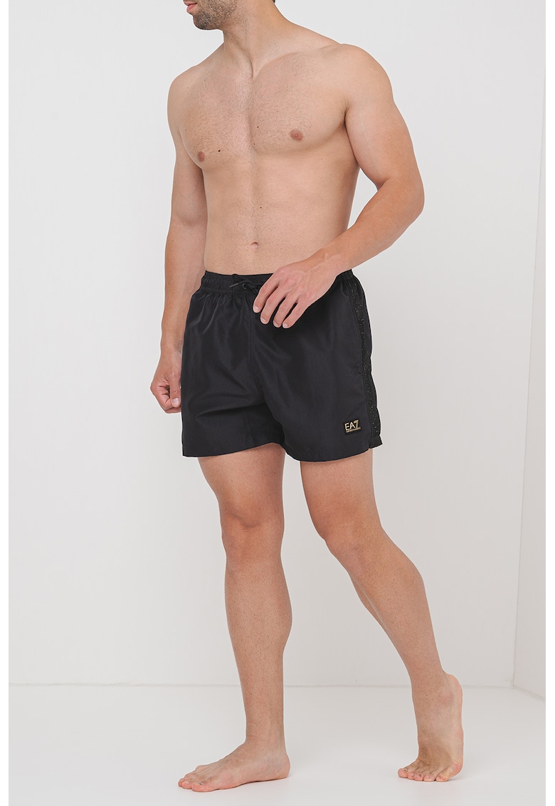 Pantaloni scurti de baie cu insertii laterale - Negru