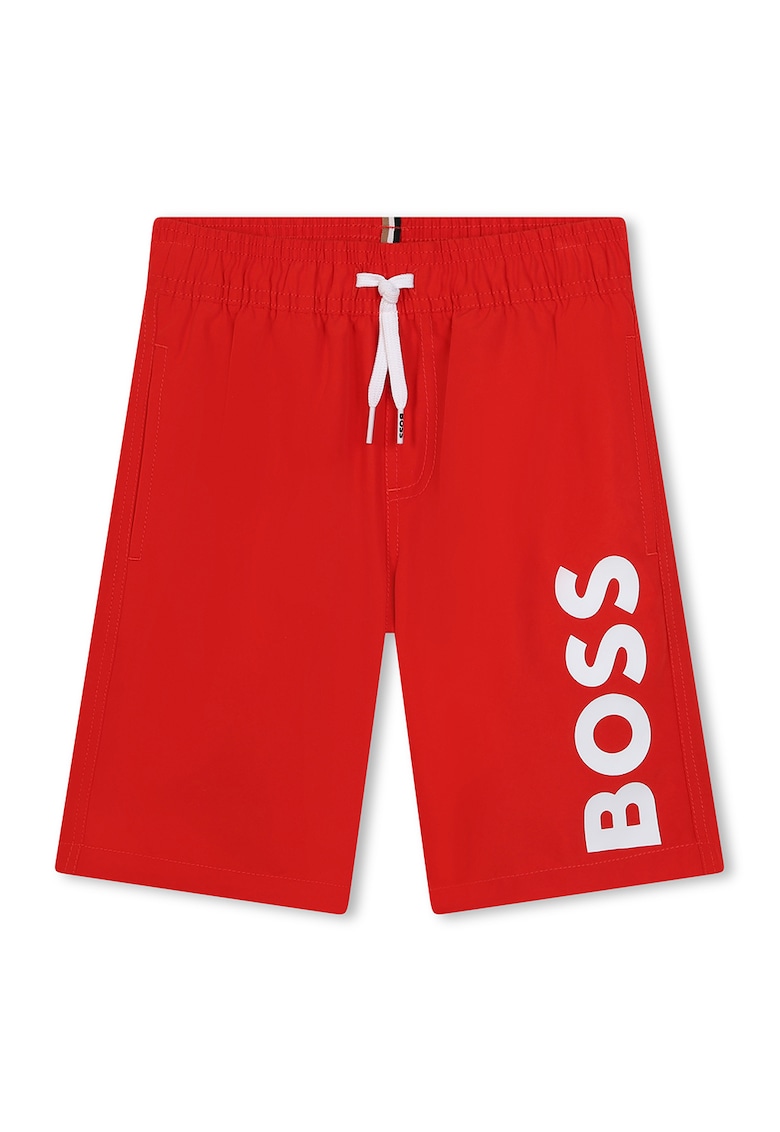Pantaloni scurti de baie cu snur de ajustare in talie - Rosu/Alb