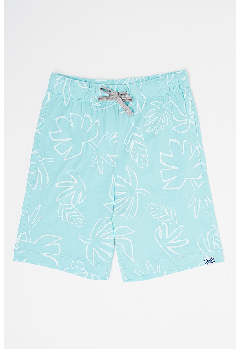 Pantaloni scurti de bumbac cu model tropical - Turcoaz