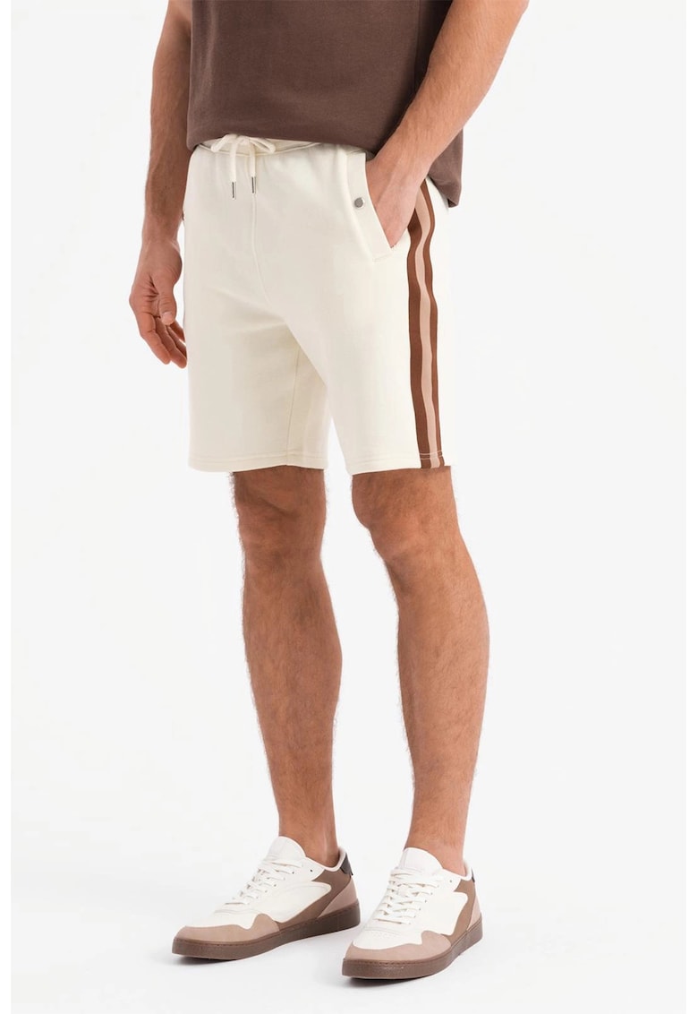 Pantaloni scurti din amestec de bumbac cu buzunare oblice - Maro/Crem