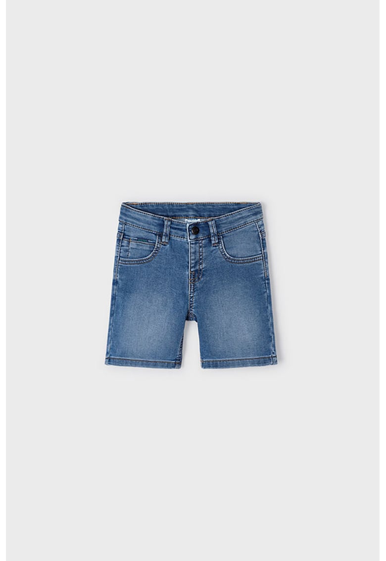 Pantaloni scurti din denim si buzunare frontale - Albastru melange