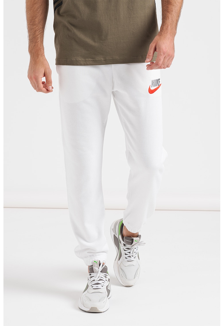 Pantaloni sport din amestec de bumbac cu broderie logo - Alb