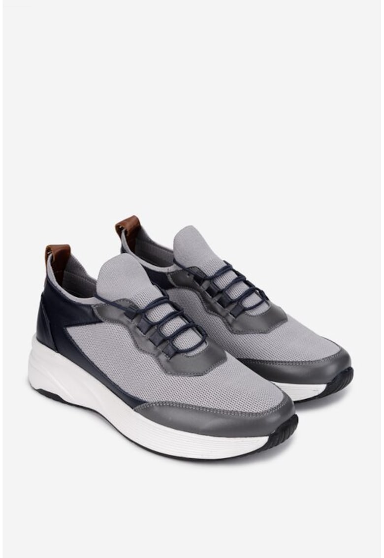 Pantofi barbati gri cu negru din piele si material textil