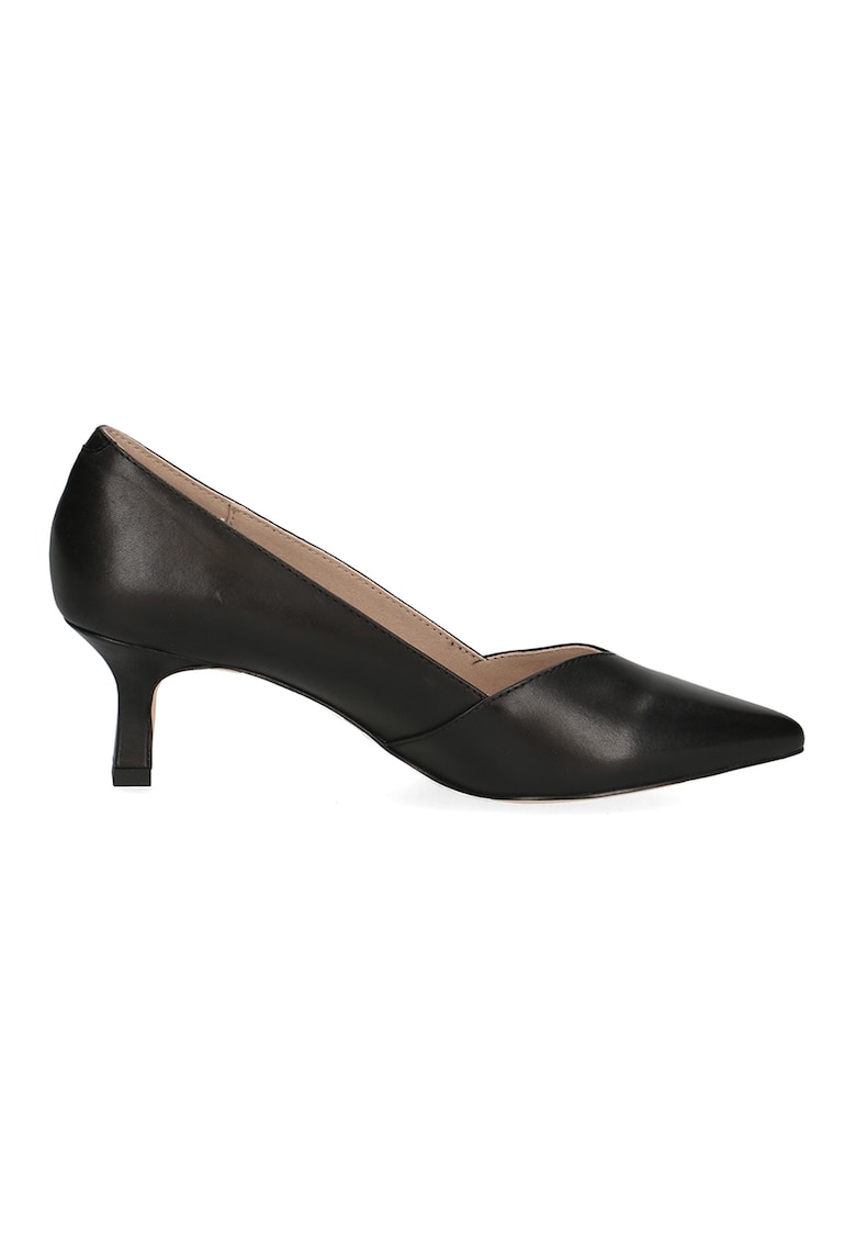Pantofi de piele cu varf ascutit si toc kitten - Negru