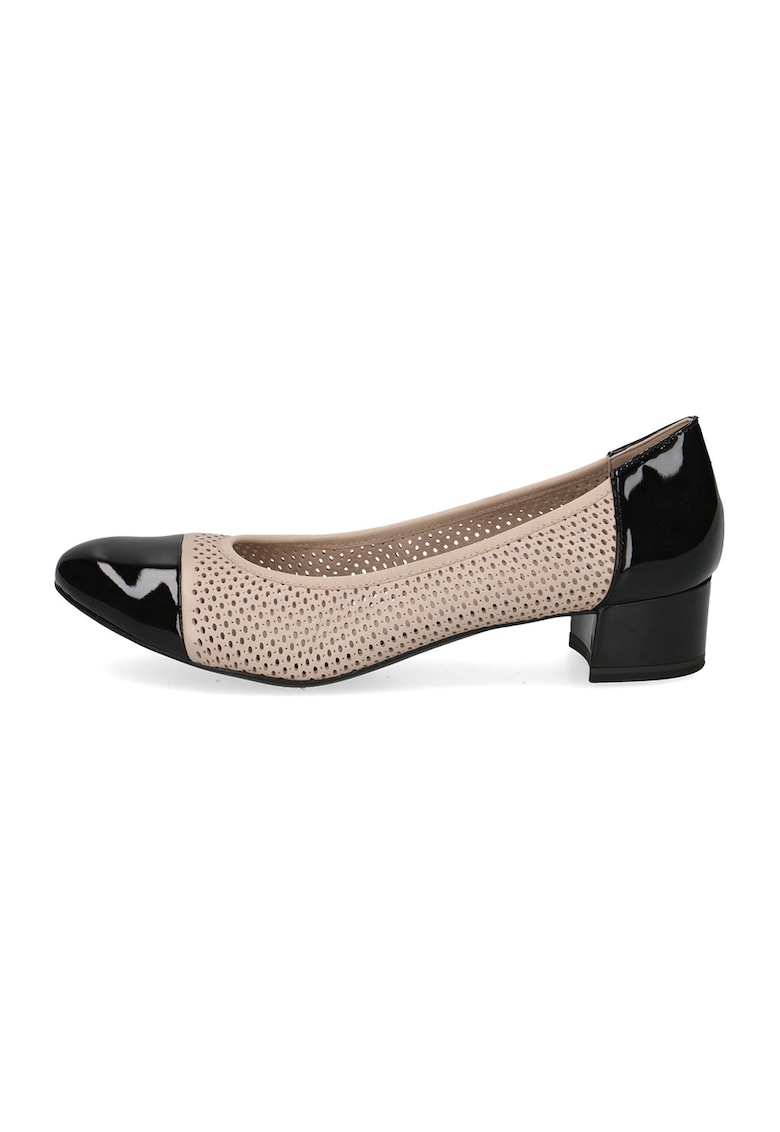Pantofi din piele si piele ecologica cu toc masiv si design perforat - Negru/Bej