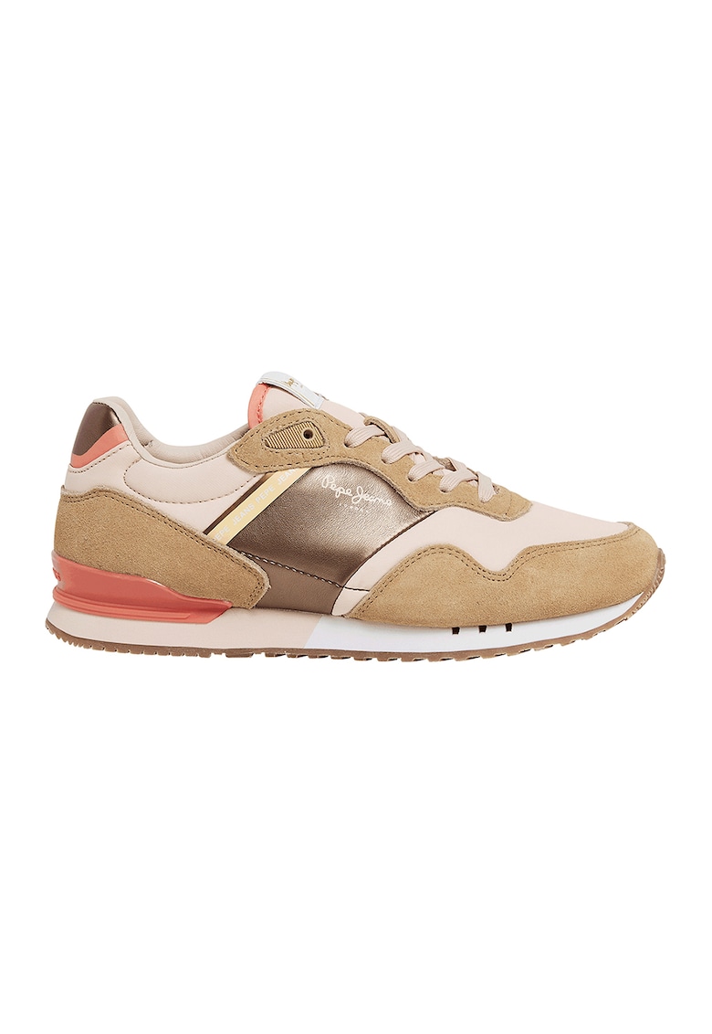 Pantofi sport colorblock cu insertii de piele intoarsa - Maro nisip/Auriu rose