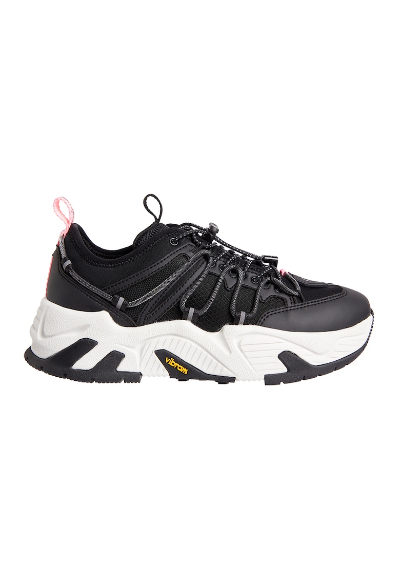 Pantofi sport cu garnituri de piele ecologica - Negru/Roz