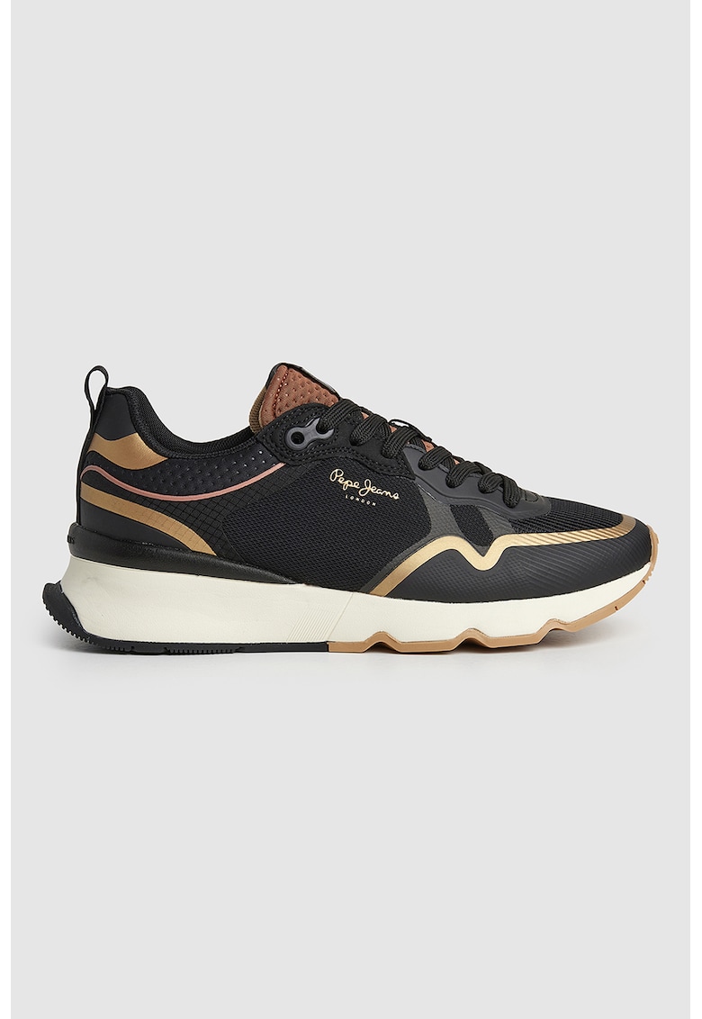Pantofi sport cu garnituri textile - Auriu/Negru stins
