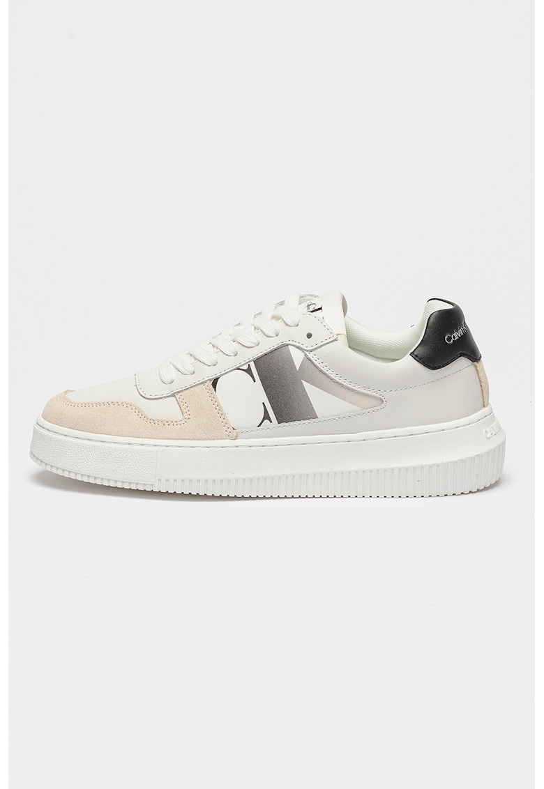 Pantofi sport cu insertii de piele intoarsa - Negru/Bej/Alb optic