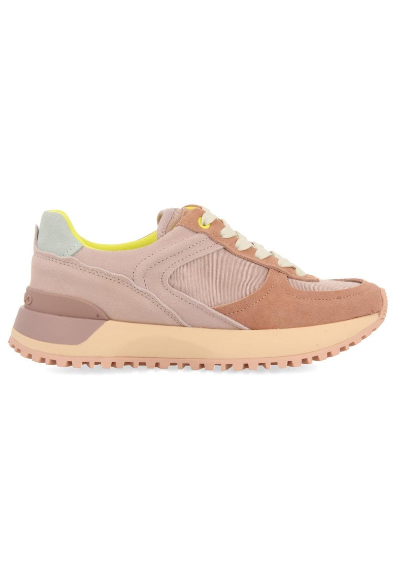 Pantofi sport cu insertii de piele intoarsa - Portocaliu persan/Roz prafuit