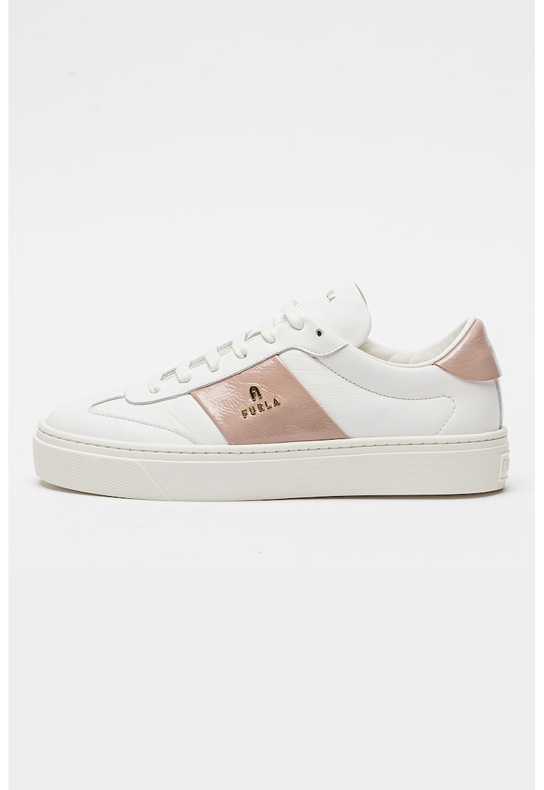 Pantofi sport de piele cu logo metalic - Alb/Roz prafuit