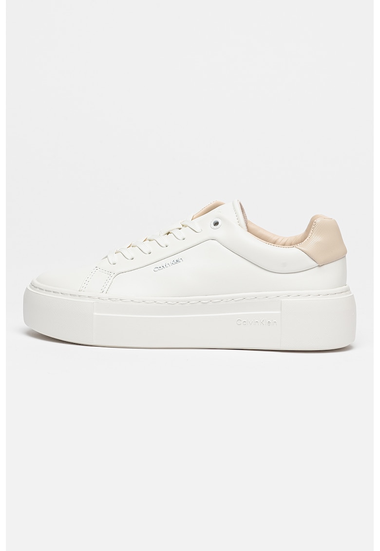 Pantofi sport de piele cu platforma - Alb/Bej inchis