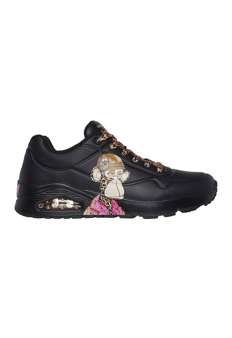 Caracteristici Culoare: negru - bej Imprimeu: cu model Material: piele ecologica Varf: rotund Sistem inchidere: siret Linie Brand: skechers x snoop dogg Compozitie Partea superioara: sintetic Material interior: textil Material talpa: alte materiale