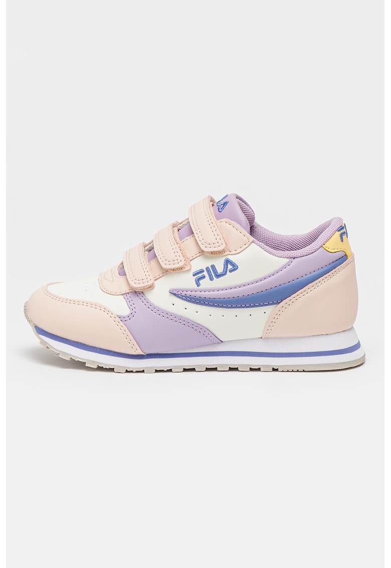 Pantofi sport de piele ecologica cu inchidere velcro Orbit - Piersica/Lila/Alb murdar