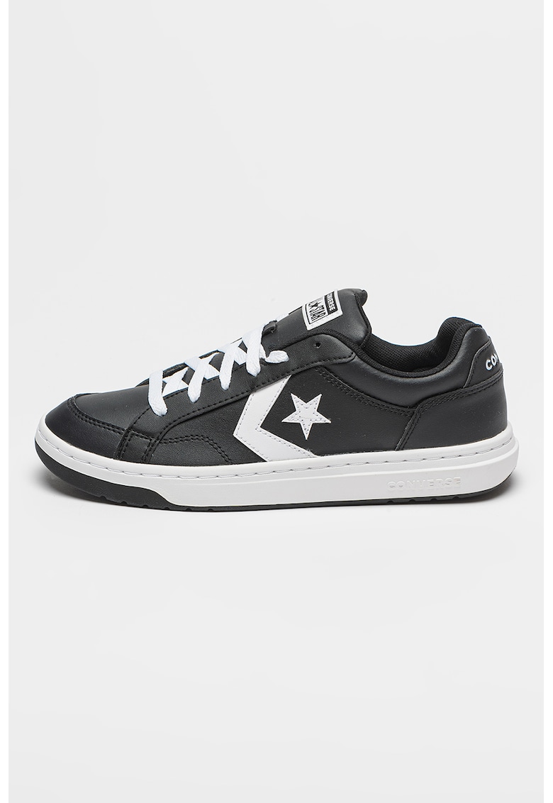 Pantofi sport de piele ecologica cu logo aplicat - Alb/Negru